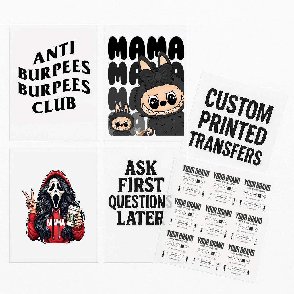 Already have your own blanks or run a small brand? We also offer custom DTF transfers — high-quality, vibrant prints ready to press on demand. Perfect for at-home creators, small businesses, or shops that want professional results without the setup. Order full sheets or gang sheets and press them on your schedule with long-lasting, stretch-resistant prints.