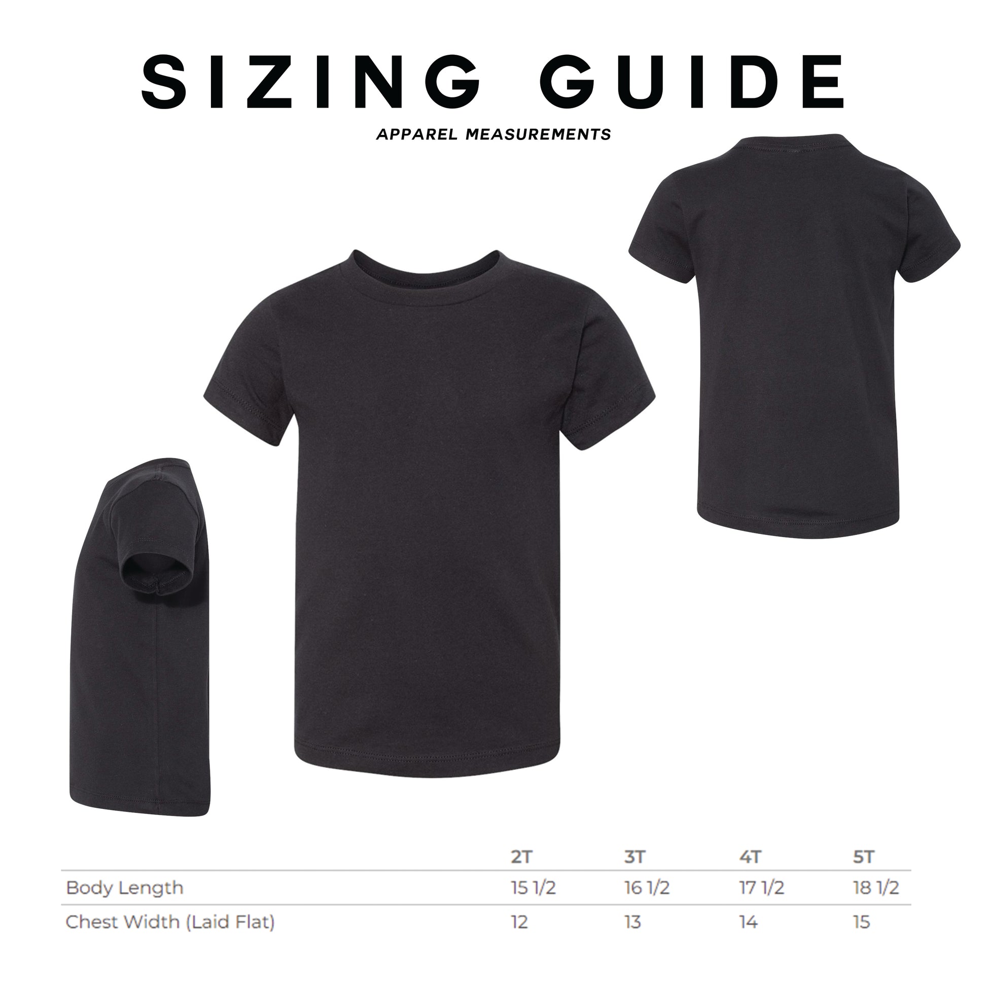 • Sizes: 2T-5T adn XS-4XL (Refer to sizing chart image)